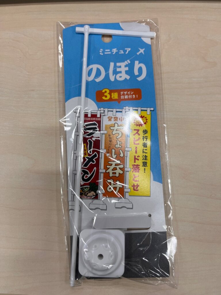ミニチュアのぼり3種 セリア 味自慢ラーメンやスピード落とせなど遊び心がある幟旗が出来る