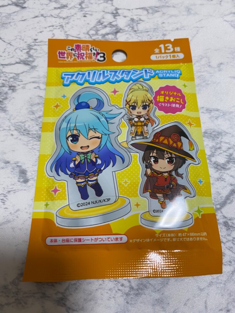 セリアにて購入しました。 数日に1回はセリアに行っているのですが、 最近1から見ているアニメのアクスタを発見。 先日まで映画もやっていた、このすばのアクリルスタン... -