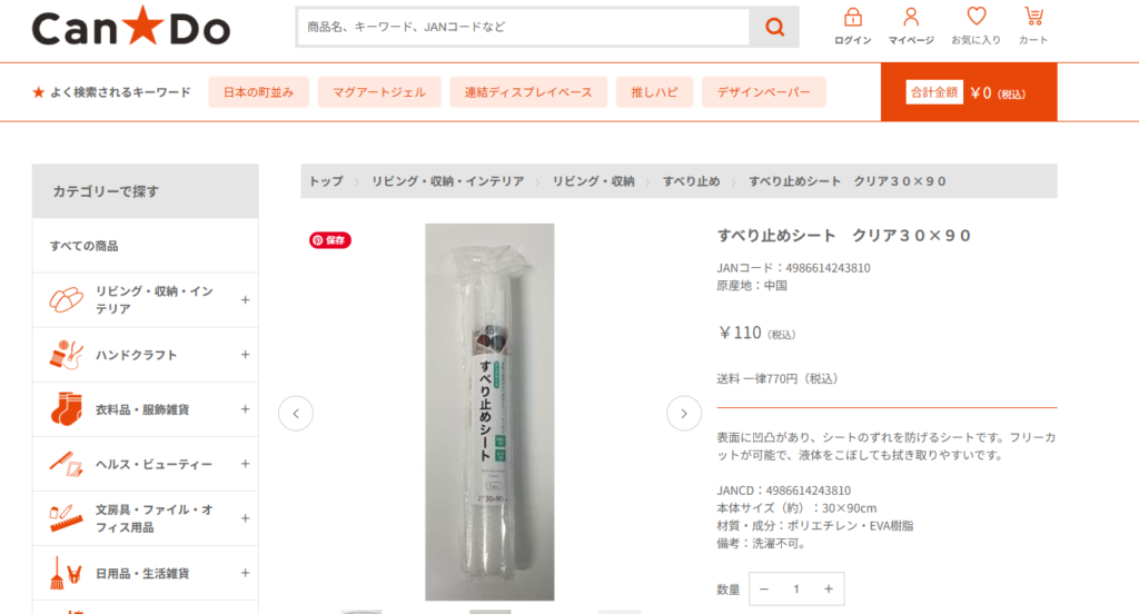 キャンドゥ すべり止めシート・マット(110円)