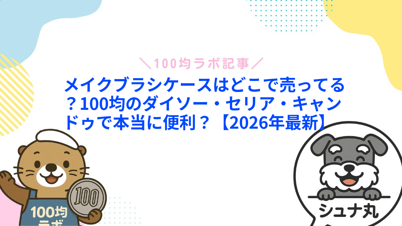 100均のメイクブラシケース(ブラシ収納ケース・ロールタイプ・スタンド型・スリムポーチ・折りたたみブラシケースなど)は、ダイソー・セリア・キャンドゥでメイク道具整理・持ち運びに大人気のアイテム! 2026年現在も110〜330円(税込)で揃い、PVC・ナイロン・クリア・レザー調・メッシュが主流。サイズはスリム(ブラシ5〜10本)から大容量(20〜30本)で、学生・社会人女性を中心に、旅行用スリムタイプや自宅スタンド型がおしゃれで人気です。失敗しない選び方は「持ち運び→スリムロール/ポーチ」→「自宅用→スタンド型・透明」→「ブラシ本数と太さに合わせる」のがコツです。