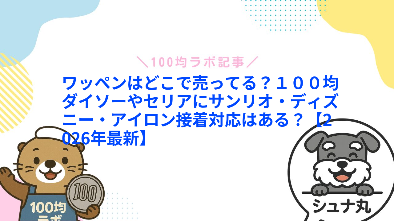 ダイソーは種類・キャラクターの豊富さNo.1で、「サンリオ(キティ・マイメロ・クロミ・シナモン・ポチャッコ・バッドばつ丸の日焼けVer.など)」(110円)・「ディズニー(ミッキー・プリンセス・プーさんなど)」(110円)・「ひらがな・アルファベット・名前用」(110円)・「動物(文鳥・インコなど)」(110円)が充実。刺繍ワッペン・シールワッペン・アイロン接着タイプが揃い、大きめサイズもあり、推し活・名前付けに最適が特徴です。