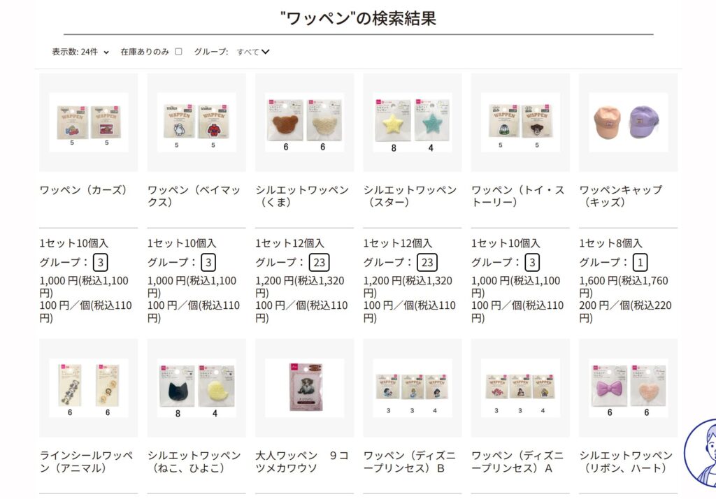 - 用途で選択〜推し活→サンリオ・ディズニー・パイル、名前付け→ひらがな・アルファベット、リメイク→大型・刺繍、シール感覚→シールワッペン