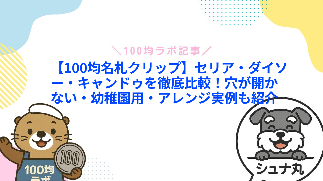 「名札をつけるたびに服に穴が開く…」「子どもが自分でつけられる名札クリップが欲しい」「幼稚園の準備に何がいいかわからない」そんな悩みをまとめて解決してくれるのが、100均の名札クリップです!セリア・ダイソー・キャンドゥで110円から手に入り、服に穴が開かない回転式タイプが主流。子どもでもパチッと挟むだけで使えます。