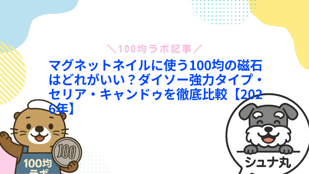 「マグネットネイルに使う磁石はどれがいいの?」「100均の磁石で代用できる?」「セリアとダイソーどっちがおすすめ?」そんな疑問をまとめて解決します!マグネットネイルの仕上がりを左右するのは実はジェルより磁石の強さ。ダイソーの強力2WAYスティックからセリアのプリズムジェル・キャンドゥの新色まで、110〜330円で揃うラインナップを徹底比較します。