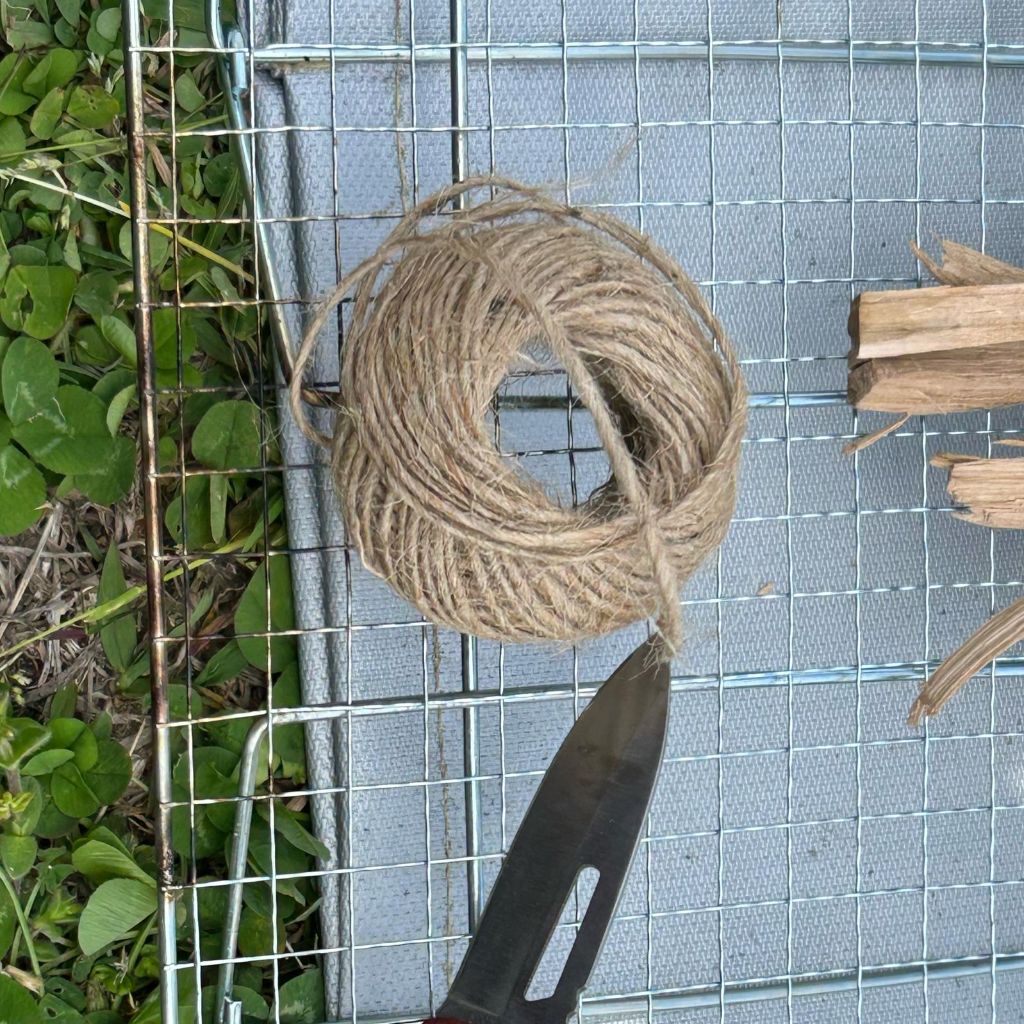 火をつけるための道具では、ファイヤースターターも100円ショップでは売っていますが今回はライターを使用します。 細く切った薪を横向きと縦向きにセットし、ライターを使って解した麻ひもに火をつけてみましょう! 因みに薪はダイソーでも購入可能です。