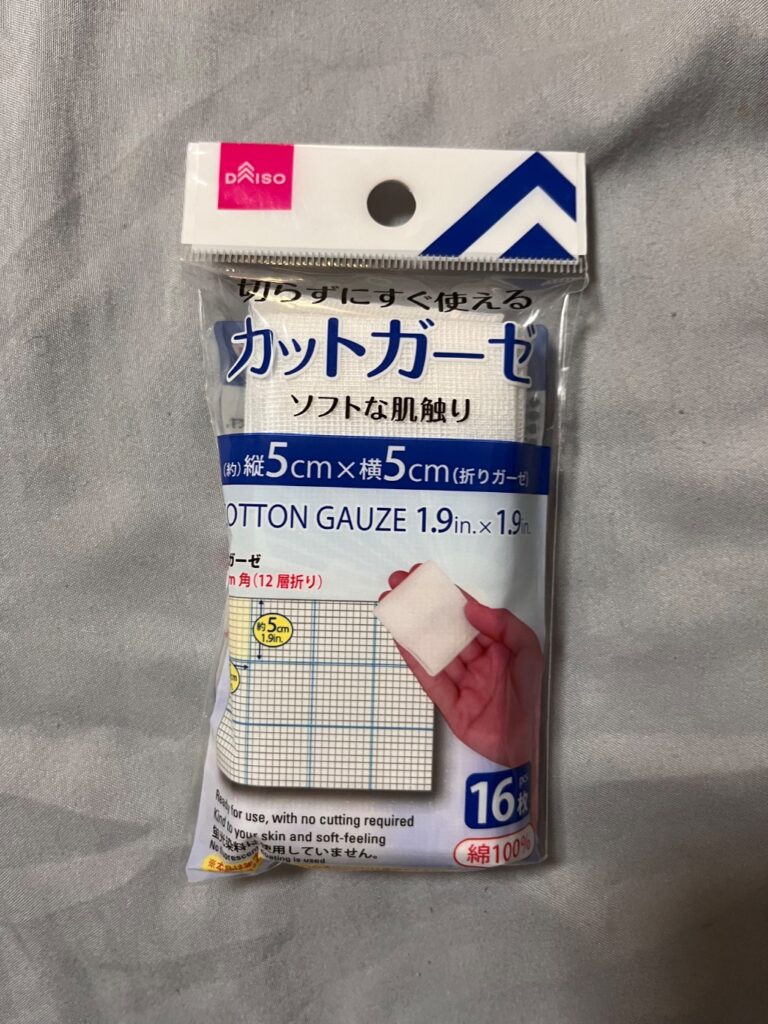 高額な医療品をそろえる必要がないと実感させてくれる、まさに100均のガーゼの真髄を感じました。