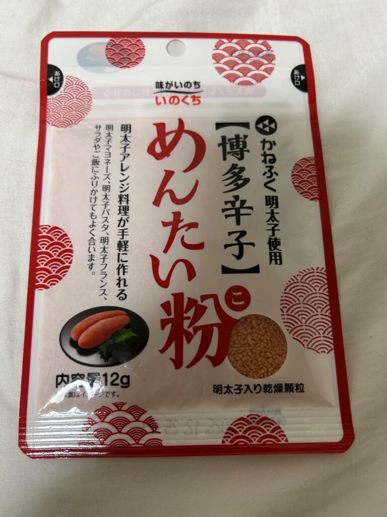 「めんたい粉」は ダイソー (2025年3月25日時点)では、販売確認済! 最新の在庫状況は各店舗にてご確認ください。