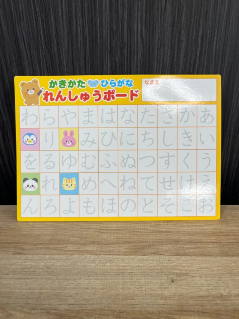 「かいてけせる書き方練習ボード」は ダイソー (2025年6月25日時点)では、販売確認済! 最新の在庫状況は各店舗にてご確認ください。