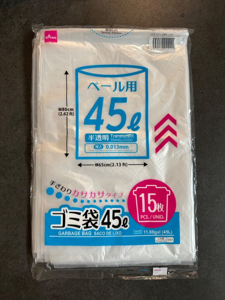 「ゴミ袋45リットル」は ダイソー (2025年7月11日時点)では、販売確認済! 最新の在庫状況は各店舗にてご確認ください。