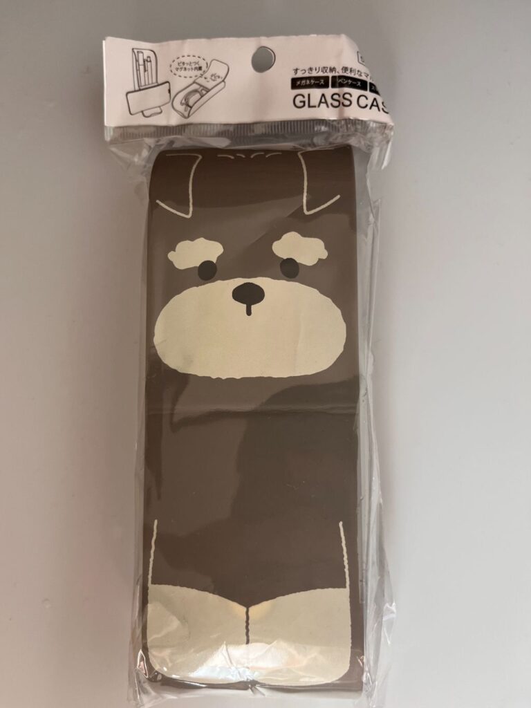 イルーシ300で見つけた、ミニチュアシュナウザー柄のスタンド型メガネケース。