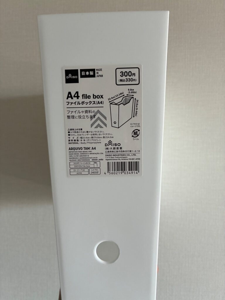 「A4ファイルボックス」は ダイソー (2025年5月8日時点)では、販売確認済! 最新の在庫状況は各店舗にてご確認ください。
