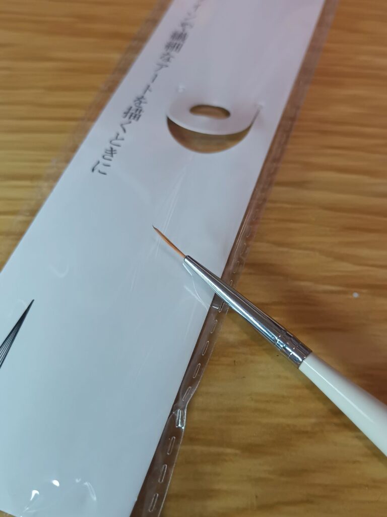 ネイルアート用として売られていますが、実はガンプラのディテール塗装やスミ入れにも超優秀。筆先が極細なのにしっかりとコシがあり、ラッカー系塗料やシンナーにも耐えるタフな作り。細かい部分やスミ入れペンでは届かない凹凸にも対応でき、1本持っておくと作業効率がアップします。100円とは思えないクオリティで、塗装派モデラーにもおすすめです。