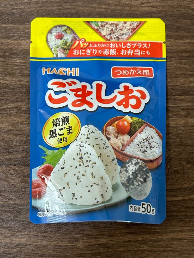 こちらはハチ食品のごましおで、つめかえ用でチャックが付いていないので注意です。ボトルも売っていました。