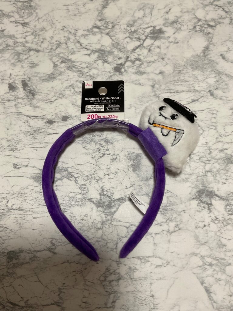 「ハロウィンカチューシャ(ホワイトゴースト)」は ダイソー (2025年8月10日時点)では、販売確認済! 最新の在庫状況は各店舗にてご確認ください。