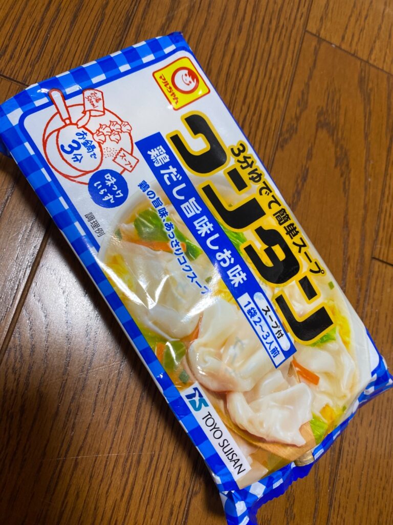 ダイソーにて購入しました。味付けいらずでお鍋で簡単にワンタンスープが作れる商品です。