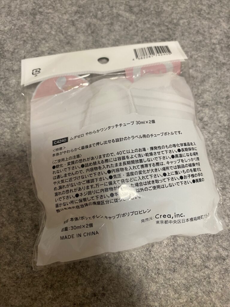 ムダゼロ やわらかワンタッチチューブ ダイソー 旅行先へシャンプートリートメントを持参