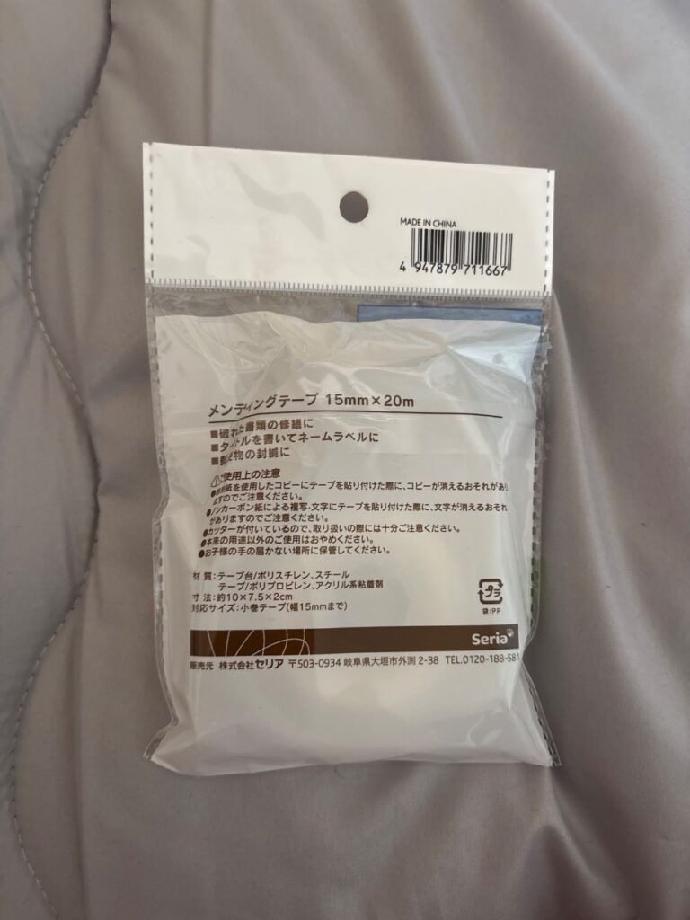「メンディングテープ」は セリア (2025年5月4日時点)では、販売確認済! 最新の在庫状況は各店舗にてご確認ください。