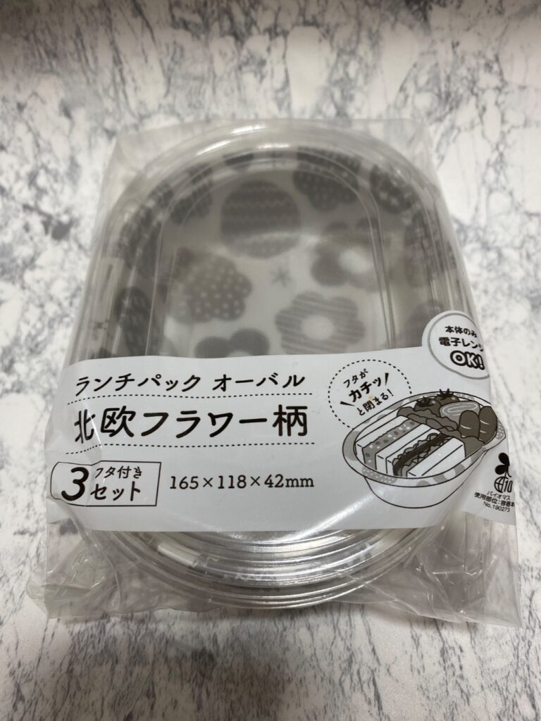 ランチパックオーバル北欧フラワー柄 ダイソー 使い捨て用お弁当箱に