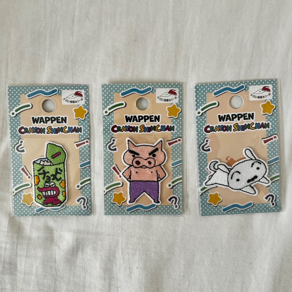 セリアの手芸コーナーで見つけました。クレヨンしんちゃん好きなので残っていた全種類購入しました。ステッカーなどを収納しているクリアファイルに入れて保管しようかなと思っていたのですが、Tシャツや巾着に付けても絶対可愛いのでやりたいなと思っています。
