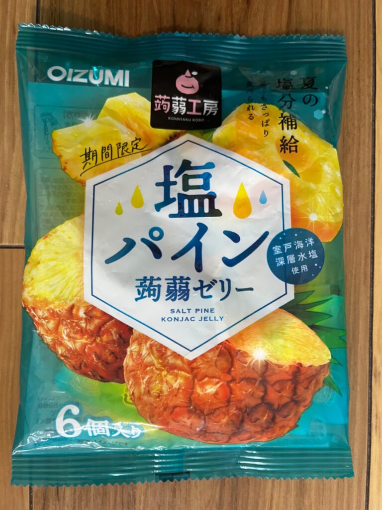 名前の通り、塩味とパインの爽やかさが口の中に広がってとても美味しかったです。蒟蒻ゼリーなのでぷるぷるで歯ごたえもあるので、少し小腹が空いた時にちょうどいいです。夏の塩分補給にもなるので凍らせてお弁当に入れたりするのもいいと思います。