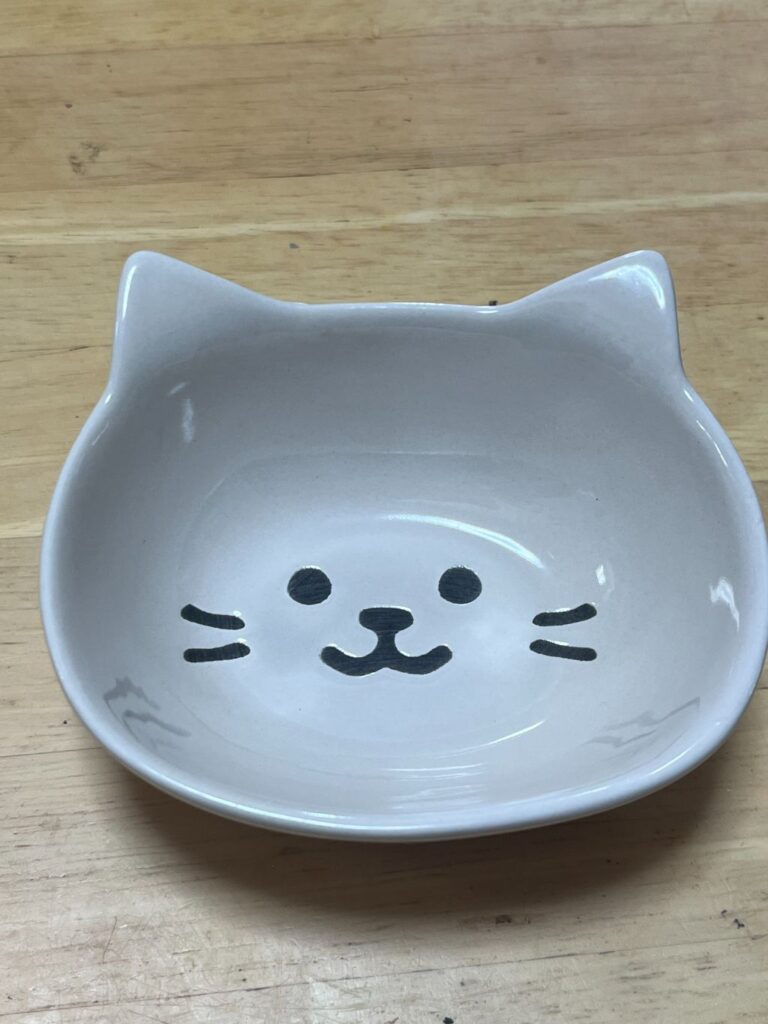 ねこちゃんの顔の形をしたお皿は、やさしい表情がとっても可愛く、見るたびに癒されます。