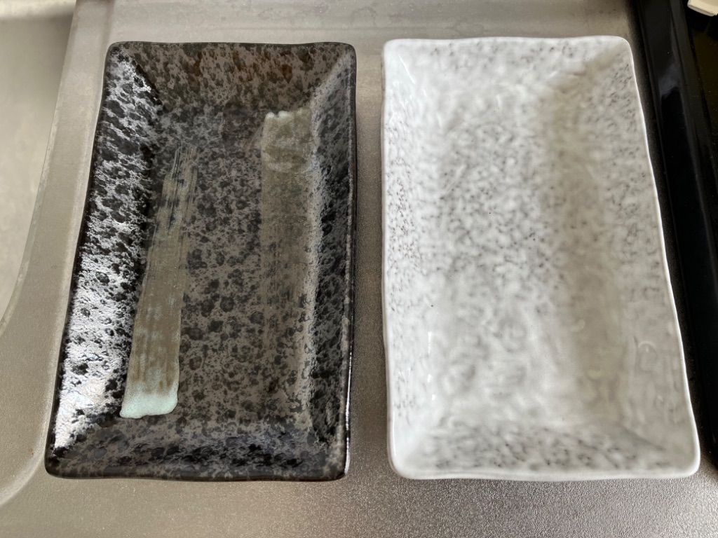長方形の角皿(黒・白) ダイソー 和モダンな雰囲気の角皿
