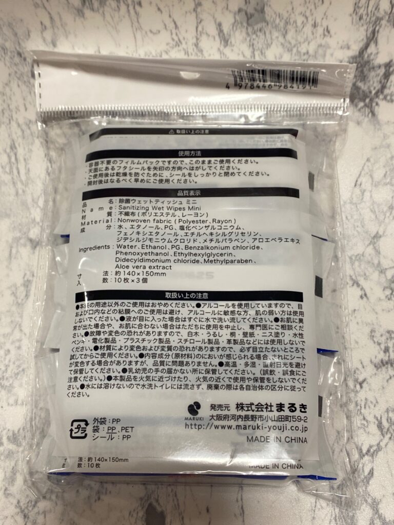 また、1枚取りだしてみると、エタノールの香りがするくらい、エタノールが配合されていて、しっかり除菌シートとしての役割を果たしてくれそうです。