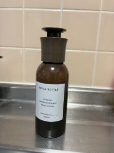 普通の洗剤のボトルだったら、ボトルを持つ→ひっくり返す→ボトルを押して洗剤を出すという動作が必要ですが、このボトルだと押す→洗剤出るだけです。洗いながら洗剤を足したいときはとても便利で使いやすいですよ。