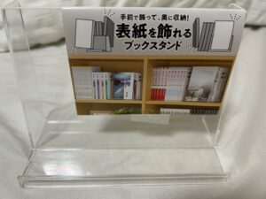 その名の通り、表紙を飾れるブックスタンドです。 クリアで存在感がないのがすごくいい。 後ろの部分が立ててある本には...